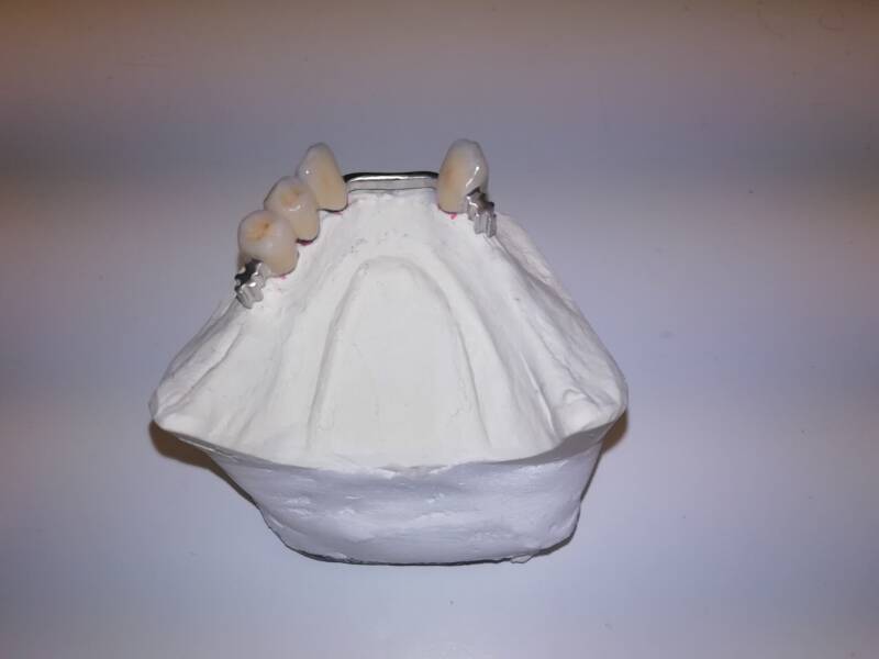 - Ponte di 3 elementi in metallo-ceramica realizzato in due parti unite tramite attacco INTERLOCK come "rompiforze". Ceramica IVOCLAR IPS. Cracks realizzati tramite tecnica di stratificazione denominata "segmentazione laterale" di UBASSY.